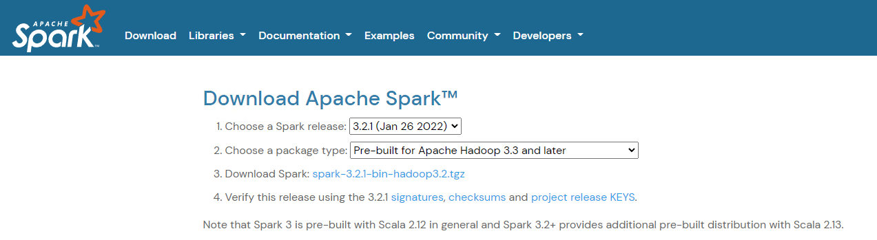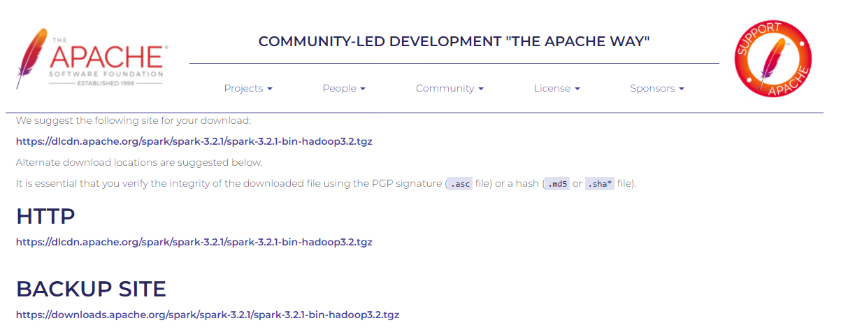 3. Download Spark : spark-3.2.1-bin-hadoop3.2.tgz 를 클릭한 후 창에 보이는 링크를 들어가서 tgz파일을 설치하면된다. tgz 파일의 압축해제가 안되면 알집을 다운받아 해제할 수 있다.