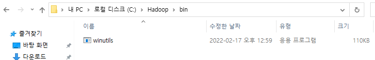 winutils.exe 파일을 다운 받고 C:\Hadoop\bin이 있는 폴더에 옮겨주자.