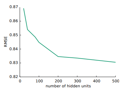 한가지 신기한 점은 $f(\cdot), g(\cdot)$ 함수를 Sigmoid 대신 ReLU를 사용할 때 오히려 성능이 떨어졌다고 한다. 추가적으로 hidden unit의 수를 나타내는 $k$의 경우 size를 늘릴수록 좋은 성능을 보여주었는데, 본 논문에서는 $k=500$으로 설정하여 분석을 수행했다고 한다.