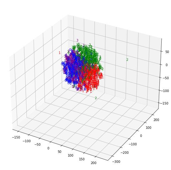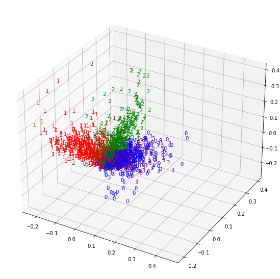 ax.text(x[i], y[i], z[i], label[i], color = colors[label[i]])