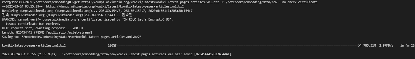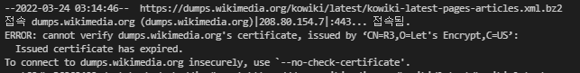 리눅스 환경에서 wget url 을 통해 데이터를 설치할 때 다음과 같은 이슈가 발생한다.