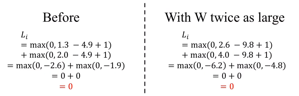 loss function 을 구했을 때 loss 가 0이 되는 값을 가지게 할 수 있는 w가 유일한가? 그렇다라고 할 수 없다.