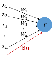$ \Sigma_{i}^{n}{w_{i}x_{i}} + b \geq 0 \rightarrow y = 1 $
