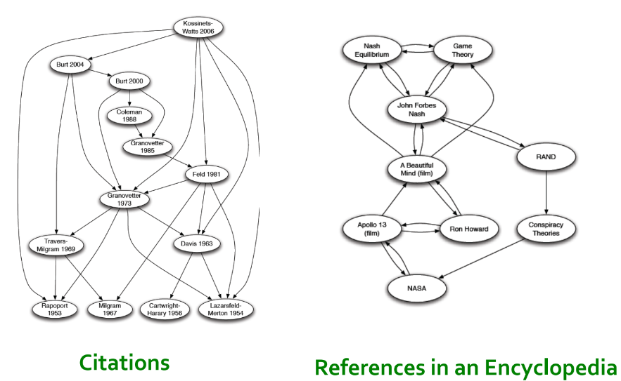 논문에서 citation을 달아 놓은 경우 논문에서 link를 클릭해 다른 논문으로 넘어가는 경우가 있을 수 있으며, Wiki나 Encyclopedia와 같은 문서에서 필요한 정보를 찾기 위해 link를 클릭해 넘어가는 경우도 있을 것이다. 본 강의에서는 Wikipedia와 유사한 Encyclopedia를 예시로 PageRank를 설명한다.