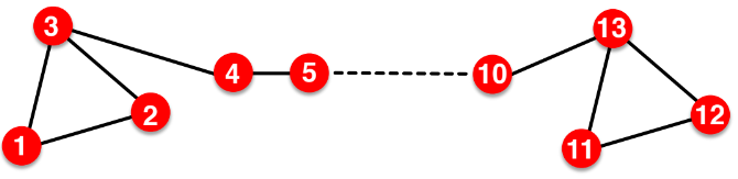 아래와 같은 구조를 가진 그래프는 구조적으로 유사하다. 노드 1은 노드 11과 유사하며 노드 2, 3은 각각 12,13과 유사하다. 그러나 random walk 방식을 사용하는 경우 이와 같은 그래프 구조에 대한 유사도를 포착하지 못한다. 만약 그래프 구조에 대해서도 학습하고 싶은 경우에는 anonymous walk를 사용하면 된다.