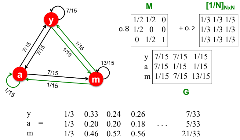 $[1/N]_{N \times N}$은 matrix의 속성이 모두 1/N인 것을 의미한다. 최종적으로 $r= G \cdot r$을 최적화하는 문제로 접근할 수 있다.