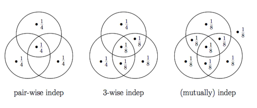 independet event를 번역 그대로 관계없는 독립적인 사건이라고 보는 것이 아니라, $A$와 $B$의 교집합과 $A$와 $B$의 확률을 각각 곱한 값이 같은 것을 independent events 라고 부른다. A,B가 멀리 떨어져있으면 indenpendent하지 않다.