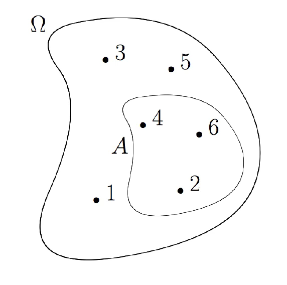 - sample point $w$ : a point representing an outcome. $ w \in \Omega $ {1, 2, 3, 4, 5, 6}