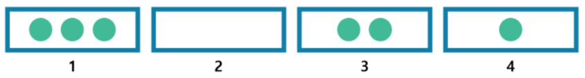 k개의 구슬을 n개의 상자에 넣는 경우의 수는 몇 가지 인가? 첫 번째 상자에는 3개의 구슬을 넣을 수 있고, 두 번째에는 0개, 세 번째에는 2개, 마지막 상자에는 1개의 구슬을 넣을 수 있다고 하자. 이때 k는 6이 되고, n은 4가 된다. 아래와 같은 예시로 조합을 생성하기에는 이해가 어려울 수 있다. 이를 아래의 예시로 바꿔서 생각해보자.
