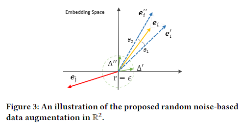 Node Dropout, Edge Dropout 처럼 그래프 구조를 조작하는 것은 다루기 힘들 뿐더러, 시간이 많이 걸리기 때문에 본 논문에서는 아래와 같이 임베딩 공간에서 노이즈를 주어 균일성을 조정하고자 한다.