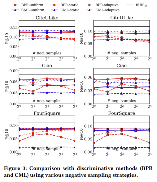 그러나, 기존 연구에서 사용하는 NS는 다음과 같은 문제점이 존재한다. 첫 번째, 데이터의 Sparsity 정도에 따라 효과가 달라진다. Positive Sample이 적을수록 Positive하지만 interaction이 없는 값이 많아져서, 실제로 Negative를 샘플링하기 어려워진다. 두 번째, NS가 어떻게 샘플링 되냐에 따라 모델의 수렴 속도가 달라진다. 예를 들어, non-uniform distribution으로 Negative를 추출하게 되면, 모델의 성능을 향상될 수 있지만, 많은 양의 사용자와 연산을 수행해야하기 때문에 속도가 저하된다.