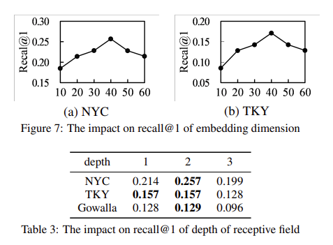 본 연구에서는 시간적 공간적 수용 범위를 고려하기 이해 Receptive Field를 도입하는데 사용자와 장소에 대한 Receptive Field는 $H^{(D)}_{U / L, U}$로 표기한다. $D$는 Depth를 의미하고, $e_{u^{\prime} / l^{\prime} }$는 사용자/장소의 Neighbour Entity를 의미하고, $N^{u/l}$는 Neighbour Entity 집합을 의미한다. Neighbour Entity는 Target Entity와 관련있는 Entity를 의미한다.