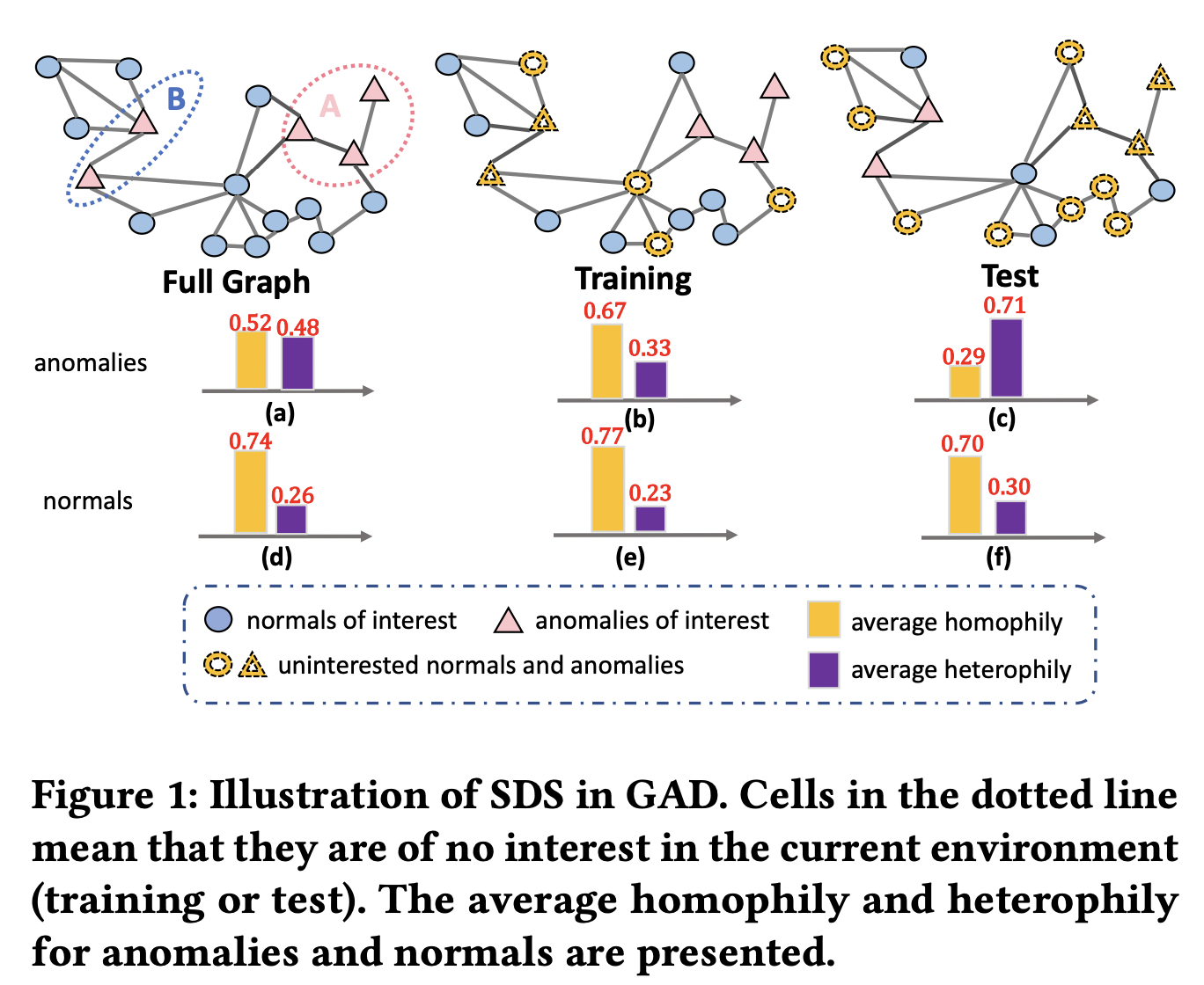 GNN-based GAD 방법은 주변 노드의 패턴을 학습해, 학습 단계에서 관측하지 못한 노드에게 전달하기 때문에 SDS를 무시하고 있다. 이때 SDS로 인해, 모델의 성능을 저하시키는 원인이 된다.