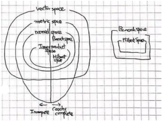 모든 문제는 infinite에서 생겨난다. 다루고 있는 모든 수들이 유리수의 집합인데 $\pi$를 정의하라고 한다면 궁극적인 그 수에 대한 부분은 표현할 수 없고 그 공간은 complete할 수 없다. 우리가 다룰 공간은 Hilbert space이다