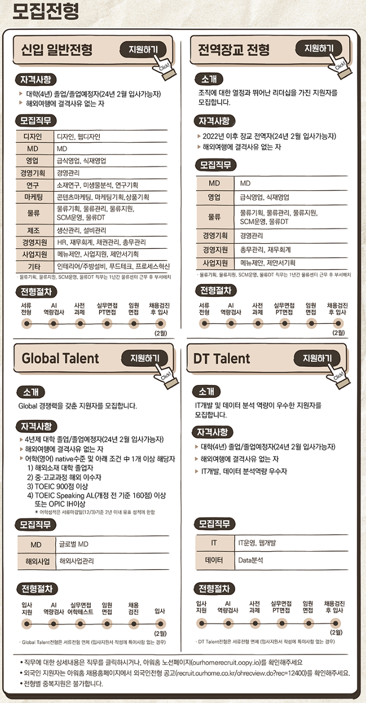 DT Talent 직무에서 데이터분석으로 지원하였고, 아워홈은 신기하게 DT Talent 분야는 서류 전형이 면제였다.