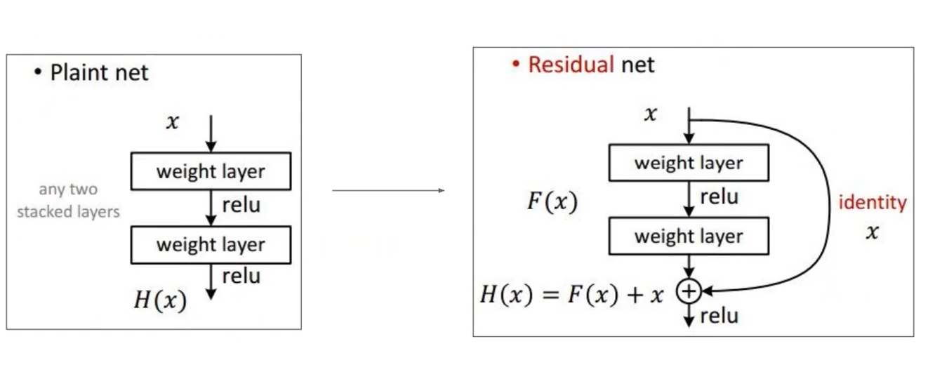 ResNet에서는 skip-connection을 통해 이전 layer의 값을 받아오는 것이 성능이 더 좋다는 것을 확인