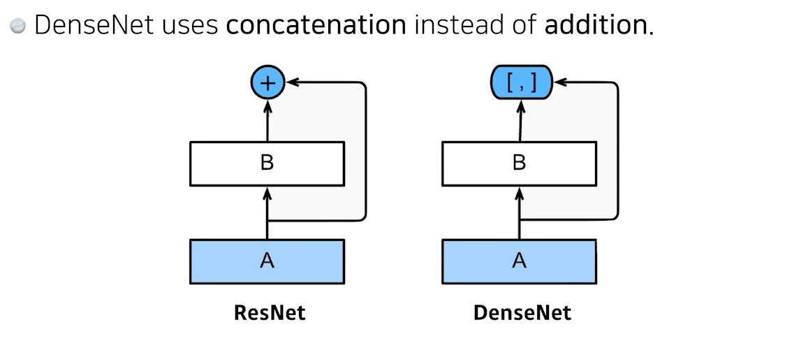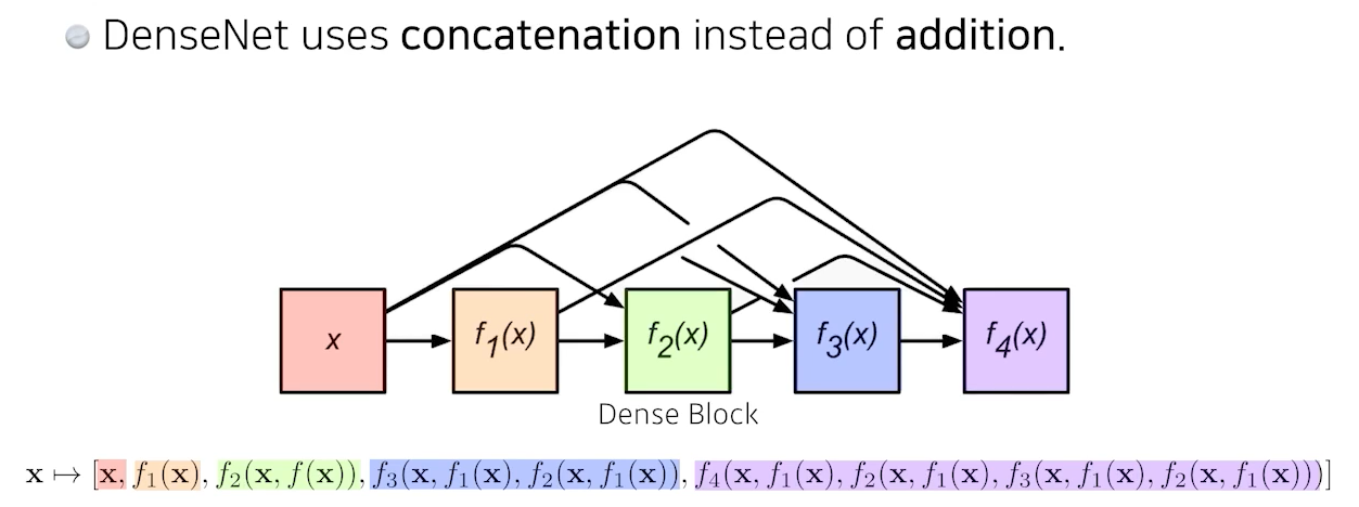 DenseNet에서는 concatenation하는 것을 확인