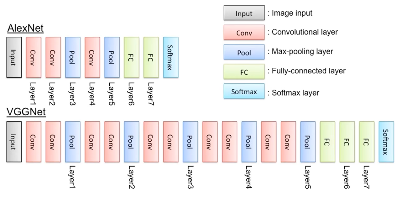 AlexNet이 우승할 수 있었던 이유 중 하나는 ReLU activation function을 사용한 것이다. ReLU는 다른 activate function에 비해 layer를 깊게 쌓음에 있어 발생할 수 있는 vanishing gradient 등의 문제에 대해서 상대적으로 덜 민감하다. 두 번째 이유는 두개의 GPU를 사용했다는 것이고, Overapping pooling과 Data augmentation, Dropout을 사용했기 때문이다.