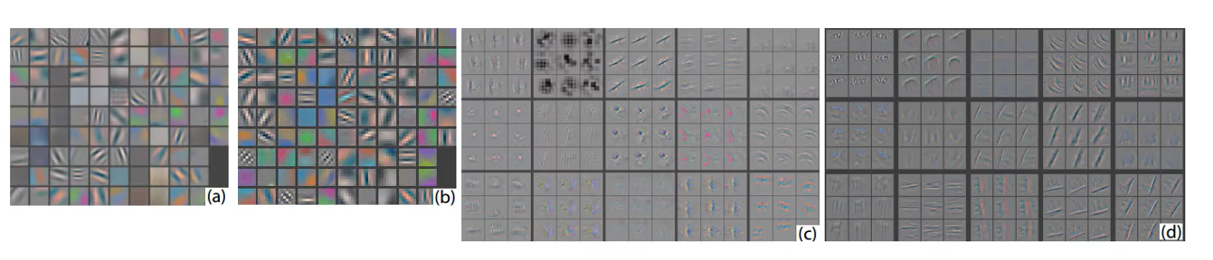 intermediate layer의 filter들을 시각화하면 AlexNet보다 조금 더 구체적으로 특징들을 잡아내는 것을 볼 수 있다.