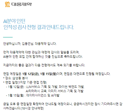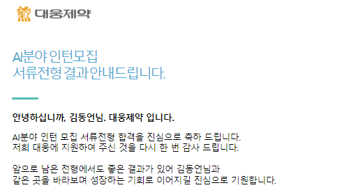 이번에는 2024 상반기 대웅제약 AI 분야 인턴 모집에 지원하였다.