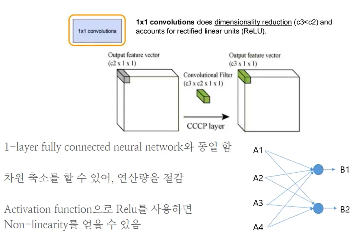 1x1 convolutions 에서 c3가 c2보다 작다면 차원의 축소할 수 있어 연산량을 감소시킬 수 있다. depth를 감소시켜 연산를 확 감소시켜버린다.