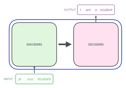 아래와 같이 input으로 Sequence가 들어오고 output으로 Sequence가 나가는 구조를 보고 Seq2Seq라고 부른다. 오른쪽 그림을 볼때 input Sequence의 입력은 3개지만 output Sequence의 출력은 4개임을 볼 수 있다. 원래 RNN의 구조를 보면 단어가 3개 입력되었을 때 Recurrent layer가 총 3번 돌아가는 구조를 띈다. 하지만 Transformer의 Encoder는 재귀적으로 돌지 않고 한 번에 입력을 받아 Decoder에 입력해준다. 생성할 때에는 순서대로 만들기는 한다.