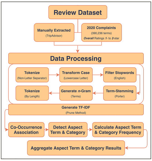 제목 그대로 호텔 Guest Cycle 내의 서비스 실패 유형을 이해하는 데 자연어 처리 측면의 분석기법을 사용하는 논문이다. 예전에는 WOM(Word of Mouth)의 구전 전달 방식으로 인해 주변 사람들에게만 말이 전달되었지만, 인터넷이 발전되어 가면서 e-WOM 형태로 변형되어졌다. 사람들은 해당 호텔을 이용하고 난 후 리뷰를 작성하는 것으로 본인이 좋았던 점, 불만족스러운 점을 작성하고 이를 분석해서 조금 더 이용객에 만족감을 제공해줄 수 있을 것이다.